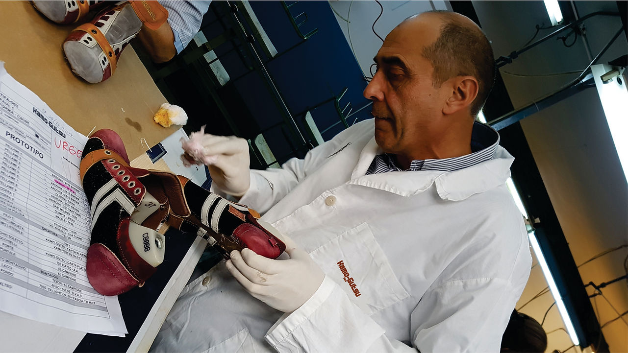 De Schoenen van Kamo Gutsu worden geproduceerd in de Marche regio in Italië, een streek beroemd vanwege zijn handgemaakte schoenen. De fabriek gebruikt uitsluitend de best beschikbaar koeien-, buffel- en geitenleer in combinatie met zacht suède of hoogwaardig textiel. Alle Schoenen worden met de hand nabewerkt voor die ultieme retro look.
